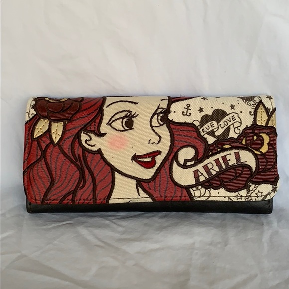 Get Ariel Tattoo Loungefly Images. The background has a true love tattoo heart and an ariel tattoo banner and rose embossed design along with disney's the little mermaid antique brass colored embossed logo. Free shipping for many products!
